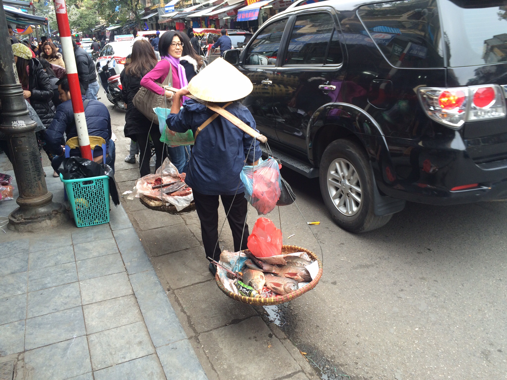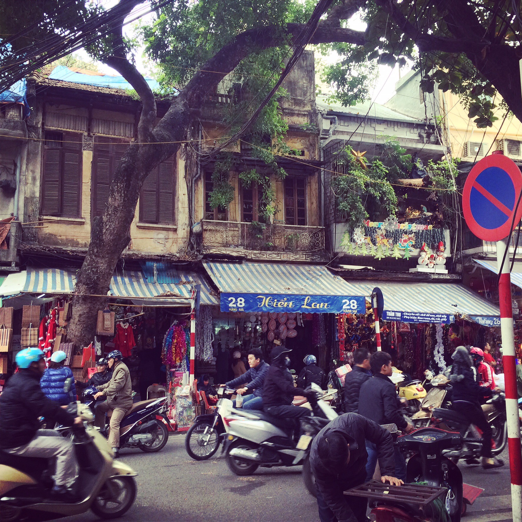 We have only two days in Hanoi, which we start by walking around the old quarter of the city, which is at least tumultuous. With its 36 streets of over 1000 years old, and the so-called “tubular houses”, which are short and narrow, it is said to be the heart of Vietnamese classical life. Food is sold and prepared on the streets, in the middle of the heavy traffic and people lounging and chewing on sunflower seeds. It is nice to see and experience, and also quite overwhelming at first.