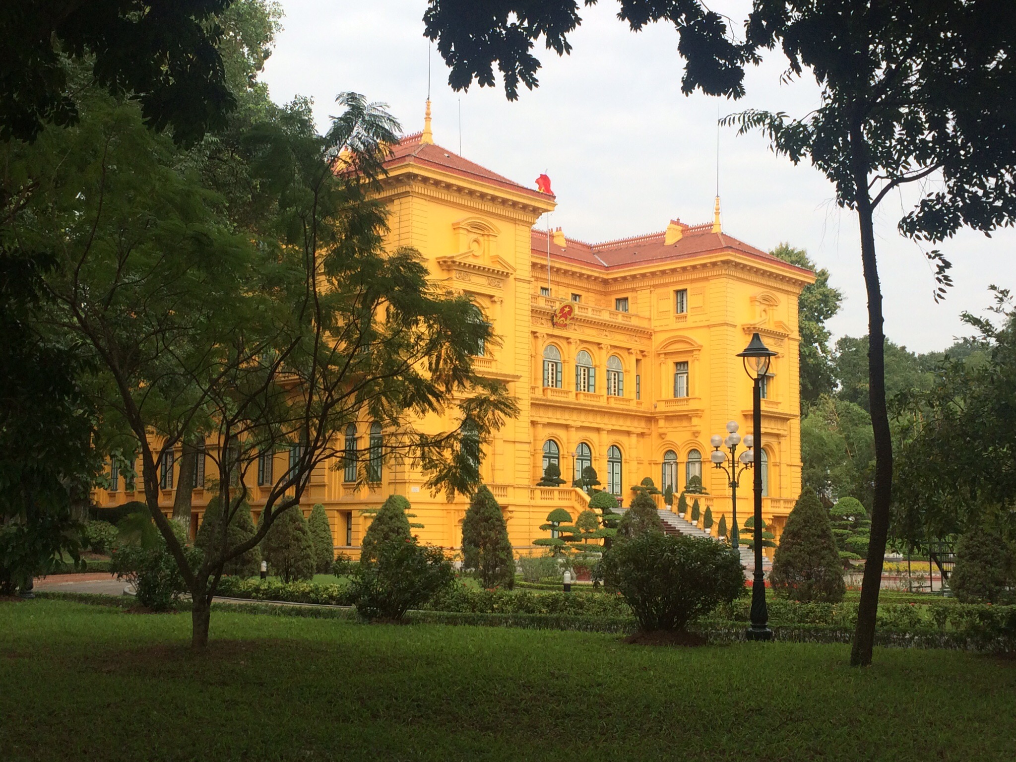 The next day we wake up early to visit the Ho Chi Minh mausoleum, which is a must-see for our short stay in Hanoi. The mausoleum opens 5 days per week from 08 to 11 in the morning. Ho Chi Minh* was a Vietnamese Communist revolutionary leader, who is seen as the liberator of Vietnam. The visit to the mausoleum is remarkable and impressive for various reasons. The protocol of visiting the mausoleum is in itself already an experience: lining up in rows of two, with strict rules on how to behave while waiting to enter the mausoleum. Arms must be next to the body (no hands in your pocket or anywhere else), no talking, no laughing, no eating or drinking, and be ready to be reprimanded by the military officers in snowy-white uniforms if you do any different. The Ho Chi Minh Mausoleum is inspired by Lenin’s Mausoleum in Moscow, and ranked as ‘sixth most ugly building’ by CNN international. Waiting in line, with mostly Vietnamese co-visitors, it takes almost an hour before we can enter the grey granite building. Inside, Ho Chi Minh’s embalmed body is preserved in a cool hall, and lies in a case with dim lights. In a few minutes, we are guided in and out of the mausoleum, after which we have to follow the stream of people along the house and former working premises of Ho Chi Minh. It is an interesting but also slightly awkward visit.