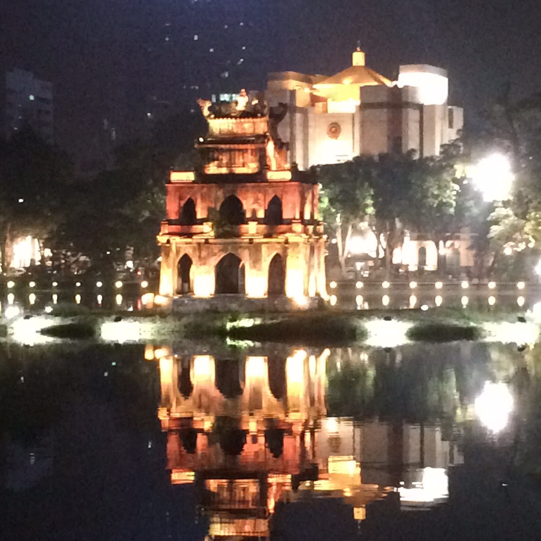 We stay in a hotel close to Lake Hoan Kiem, which translates as ‘Lake of the Restored Sword’ or ‘Lake of the Returned Sword’, in the historical centre of Hanoi. According to the legend, Emperor Le Loi had been given a magical sword by the Golden Turtle God (Kim Qui) to smite the Chinese Ming Dynasty. After fending off the the invaders, the emperor was boating on Hoan Kiem Lake when a giant turtle rose up and took the sword from him and disappeared into the depths, never to be found again. The legend says that the Golden Turtle God reclaimed the magical sword (source: havecamerawilltravel dot com).
